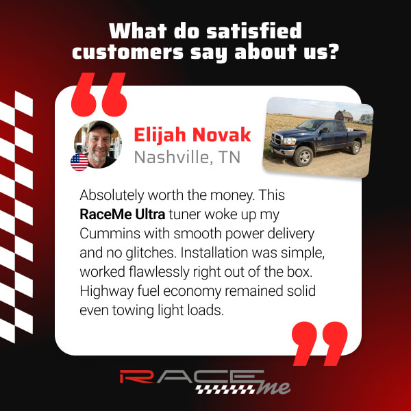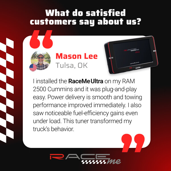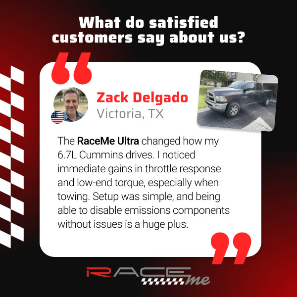 RaceMe Ultra New ECM Swap Tuning Update 2019–24 Dodge Ram 6.7 Cummins trucks 2500, 3500, 4500, and 5500.